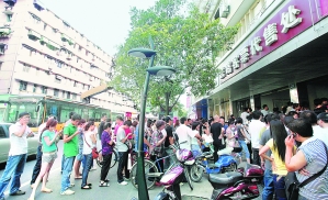 9月20日,杭州武林路上的火车票代售处,前来买票的旅客排到了马路上。