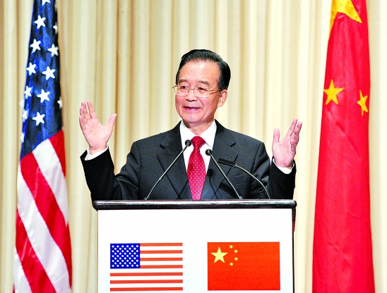 9月22日,国务院总理温家宝在纽约出席美国友好团体举行的盛大欢迎晚宴,并发表题为《携手开创新时期中美关系的光明未来》的演讲。 新华社记者 黄敬文 摄