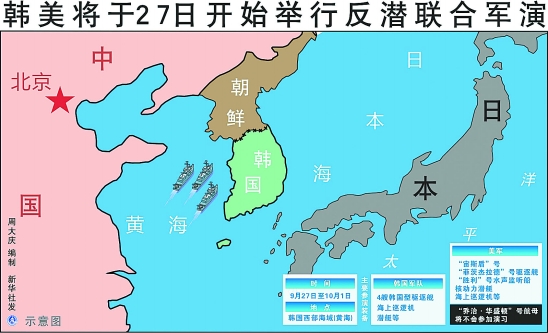 | 据新华社首尔9月24日电 (记者 班威) 韩国和美国24日宣布,因热带风暴“玛瑙”推迟举行的韩美反潜联合军事演习将于本月27日至10月1日在韩国西部海域举行。韩国军队联合参谋本部和韩美联合司令部当天表示,韩国海军将出动4艘韩国型驱逐舰以及海上巡逻机、潜艇等,美军将派遣“宙斯盾”号和“菲茨杰拉德”号驱逐舰、“胜利”号水声监听船,以及核动力潜艇、海上巡逻机等参加演习。美国的“乔治·华盛顿”号航母将不会参加演习。 |