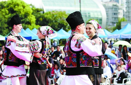 9月24日,罗马尼亚民族表演团在杭州运河文化广场,为市民带来了异国风情的传统歌舞表演。