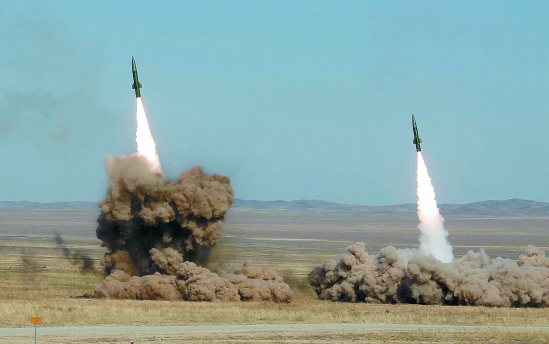 战术导弹腾空飞向目标。 新华社记者 王建民 摄