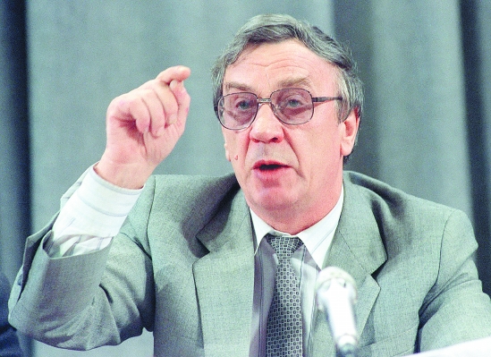 这是亚纳耶夫在莫斯科出席记者招待会的资料照片(1991年8月19日摄)。