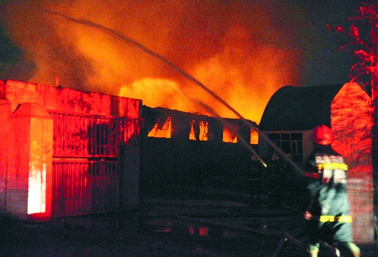 9月25日晚间,乌鲁木齐国际机场跑道东侧围墙外一家“恒利挤塑板厂”发生火灾并有爆炸,由于有爆炸物散落到机场跑道,乌鲁木齐国际机场关闭了一个小时,清理跑道。 新华社记者 王菲 摄
