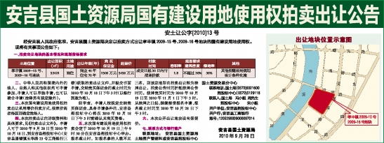 安吉县国土资源局国有建设用地使用权拍卖出让公告
