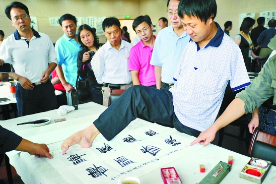 来自绍兴的无手书法