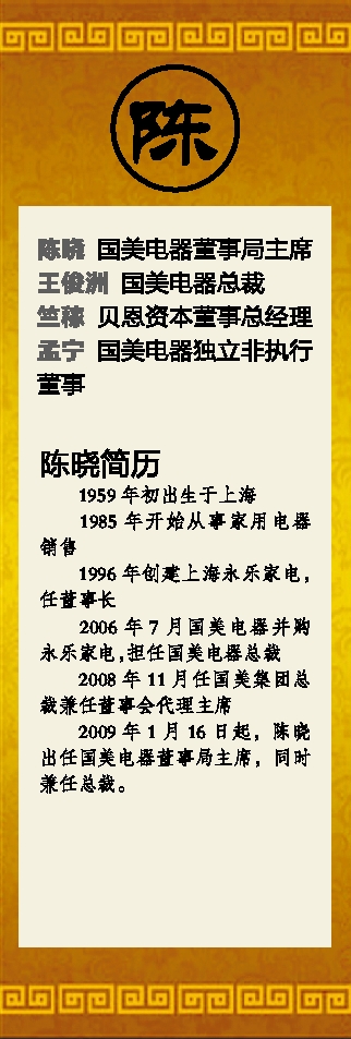 2006年7月国美电器并购永乐家电,担任国美电器总裁