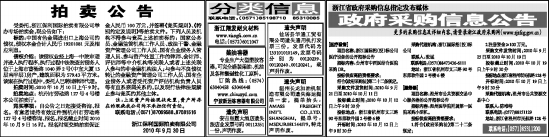 竞买事项:自公告之日起接受咨询、报名。有意者请持有效证件到杭州市劳动路127号4号楼咨询、报名。报名截止时间2010年10月9日16时。报名时须交纳拍卖保证金人民币100万元,并签署《竞买规则》、《特别约定及说明》等拍卖文件。下列人员及机构不得参与竞买上述拍卖标的:国家公务员、金融监管机构工作人员、政法干警、金融资产管理公司工作人员、国有企业债务人管理人员、参与资产处置工作的律师、会计师、评估师等中介机构等关联人或者上述关联人参与的非金融机构法人;与参与不良债权转让的金融资产管理公司工作人员、国有企业债务人或者受托资产评估机构负责人员等有直系亲属关系的,以及现行法律法规禁止参与竞买的其他主体。