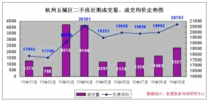 杭州我爱我家根据杭州市透明售房网统计显示,截至9月29日12时,杭州市五城区二手房共成交2327套,成交量较上月的1693套环比上升了37.45%,同比2009年9月4256套下降45.32%。9月成交均价在20702元/平方米,环比8月的19993元/平方上升了3.55%,同比去年9月16182元/平方米,上涨了27.93%。