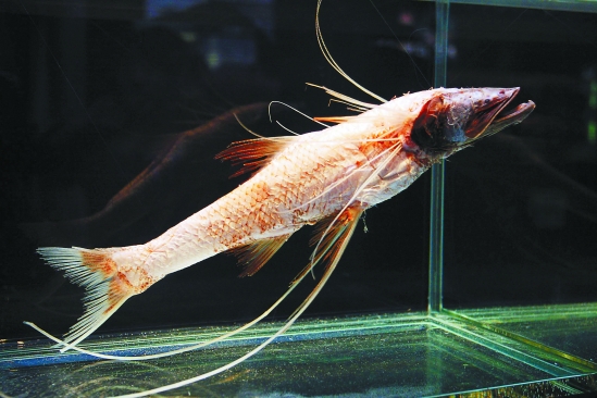 深海奇珍展上的贡氏深海狗母鱼(三角鱼)。魏志阳 摄