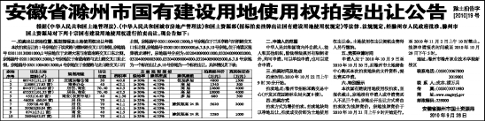 安徽省滁州市国有建设用地使用权拍卖出让公告