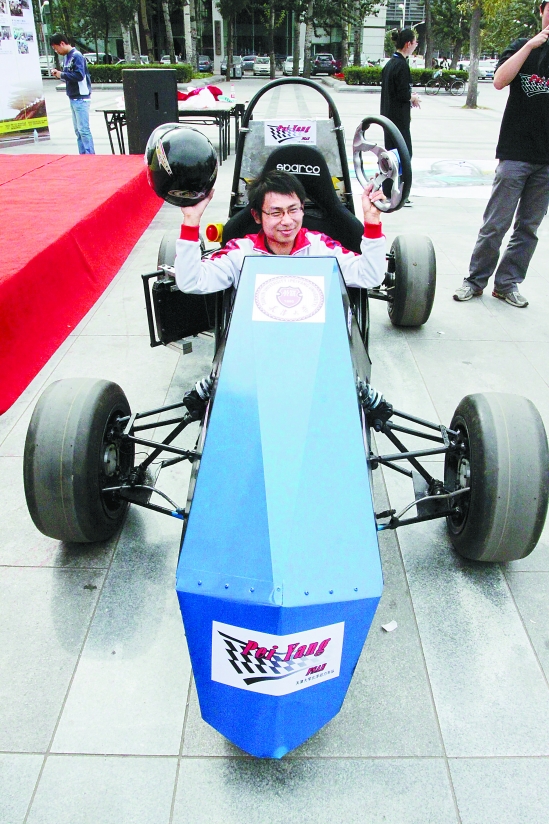 9月29日,“中国制造 擎动未来”2010中国大学生方程式汽车大赛校园巡展暨天津大学赛车发布会在北洋广场举行,“北洋动力”赛车队自主设计、自主制造的方程式赛车“浩跃2号”正式亮相。 新华社发