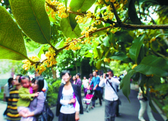桂花飘香,游客为之醉。本报记者 吴煌 摄