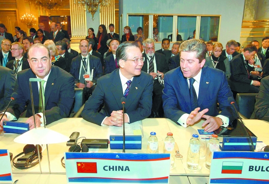 10月4日,第八届亚欧首脑会议在比利时首都布鲁塞尔开幕,国务院总理温家宝出席开幕式。这是温家宝总理与保加利亚总统珀尔瓦诺夫交流。 新华社记者 庞兴雷 摄