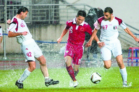 10月8日,在昆明进行的2011亚洲杯热身赛上,国足以2比1战胜叙利亚队。 CFP 供图