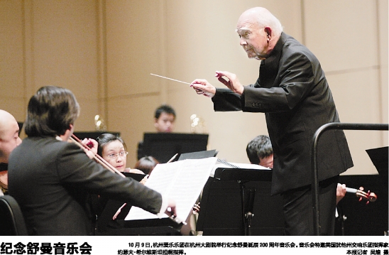 10月9日,杭州爱乐乐团在杭州大剧院举行纪念舒曼诞辰200周年音乐会。音乐会特邀美国犹他州交响乐团指挥家约瑟夫·希尔维斯坦担纲指挥。本报记者 吴煌 摄