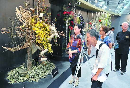 图为摄影爱好者在拍摄展出的鲜花。 新华社记者 何俊昌 摄