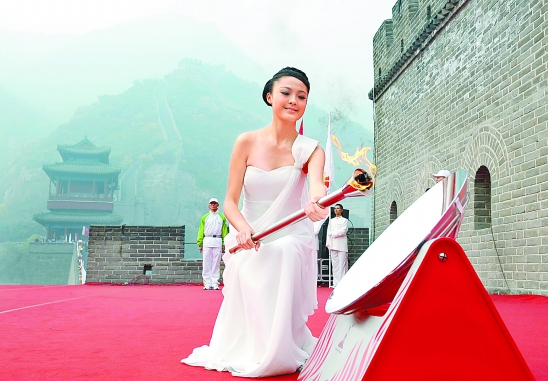 亚运火种闪耀长城