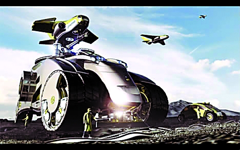 NOMAD是一款灵感来自于米德的巨型概念车,设计者为其打造了一个高容量移动桥以及停机坪。它采用核动力驱动,可连续运行相当长时间,让长时间连续工作成为一种可能。NOMAD可用于修建公路,在陌生的地方侦察并为有需要的地方运送车辆、飞机和补给。