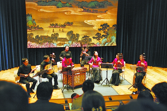 浙江婺剧团乐师演绎的芬兰民歌《在森林和原野》让观众备感亲切。