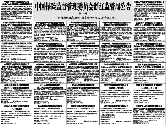 下列机构经批准,颁发、换发保险许可证,现予以公告。