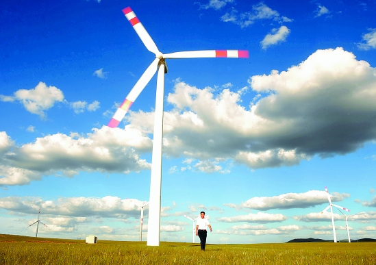 一位游客走过锡林郭勒辉腾梁风电场。建设资源节约型、环境友好型社会是“十二五”规划建议的重要内容。 新华社记者 任军川 摄