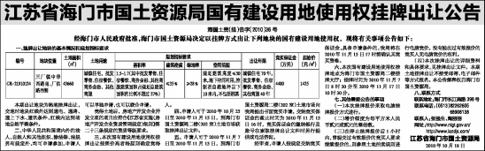 江苏省海门市国土资源局国有建设用地使用权挂牌出让公告