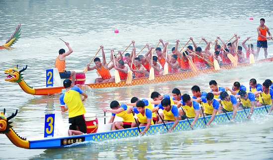 昨日上午, 2010年京杭大运河全国龙舟邀请赛开赛,来自全国各地的17支龙舟队,奋力划出最快速度。