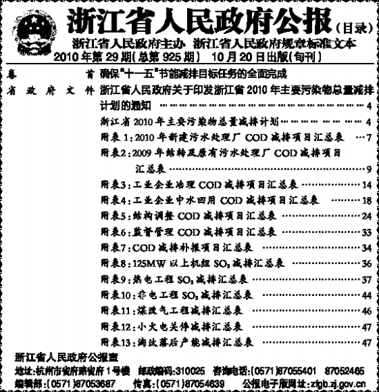 编辑部:(0571)87053687 传真:(0571)87054639 公报电子版网址:zfgb.zj.gov.cn