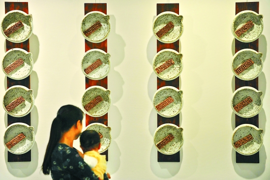 | 中国当代青年陶艺家作品双年展10月19日起在浙江美术馆开幕,共展出数百件陶艺作品。后现代感的陶制人物雕塑、大幅陶瓷挂画等许多表达新颖理念的作品创意十足。记者 吴元峰 刘慧 实习生 谢愉 摄 |