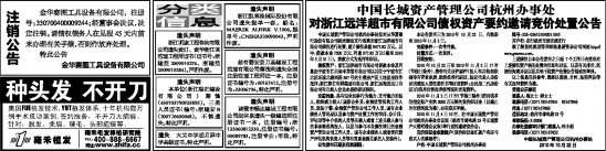 金华赛图工具设备有限公司,注册号:330700400009244;经董事会决议,决定注销。请债权债务人在见报45天内前来办理有关手续,否则作放弃处理。