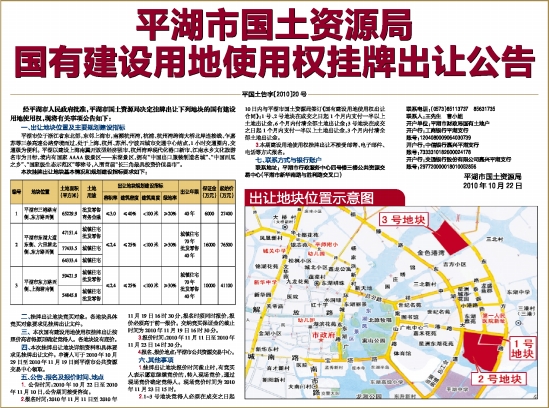 经平湖市人民政府批准,平湖市国土资源局决定挂牌出让下列地块的国有建设用地使用权,现将有关事项公告如下: