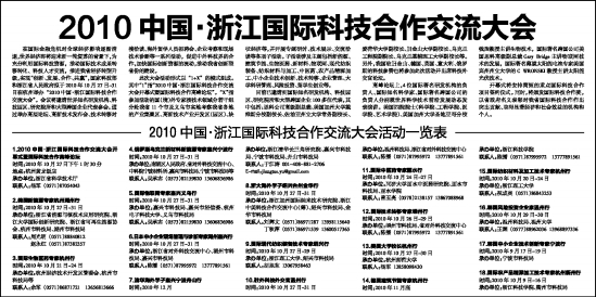 2010中国·浙江国际科技合作交流大会活动一览表