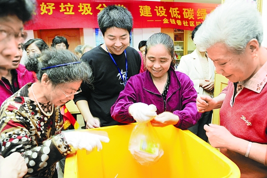 昨天,杭州金钱巷社区举行别开生面的垃圾分类比赛,引导居民正确处理生活垃圾。