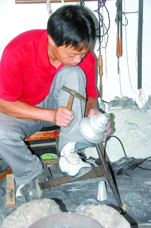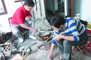如今,需要锡器的客户经常慕名上门,连北京故宫也请他制作鹤形烛台。但一个人干活,他忙不过来,妻子成为惟一的助手。他希望已长大成人的儿子能传承这门手艺,毕竟这是祖宗传下来的好手艺。今年“安峰锡艺”还被列入金华市非物质文化遗产目录。让他无奈的是,儿子学校毕业后,宁可在家闲着,也不肯学“打镴”。卢安峰向记者解嘲说,自己会否成为最后的“打镴”人了?