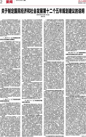 关于制定国民经济和社会发展第十二个五年规划建议的说明