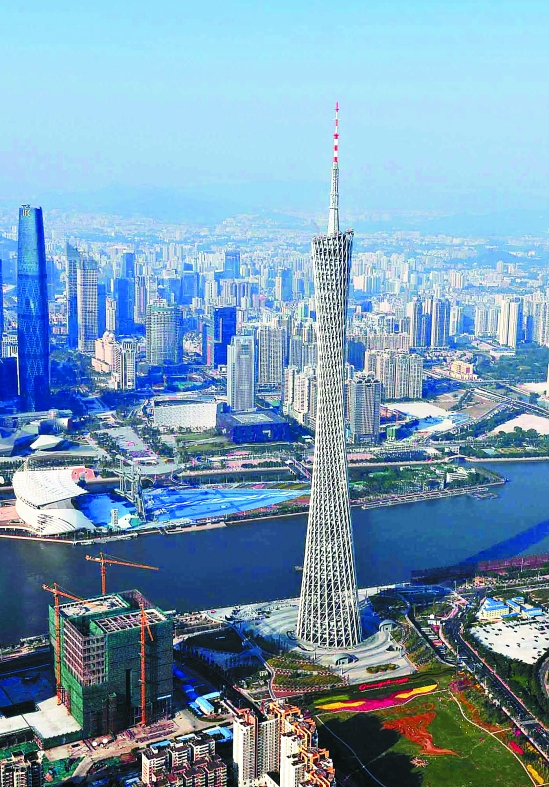 图为10月29日航拍的广州新中轴线,江心的海心沙即将举办亚运会开幕式。新华社发
