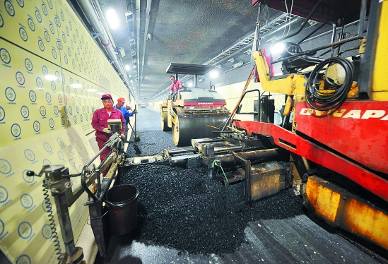 钱江隧道开铺沥青