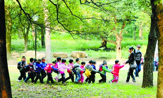 正是秋高气爽时节,11月5日,孩子们在杭州植物园玩得好开心。 里尔 摄