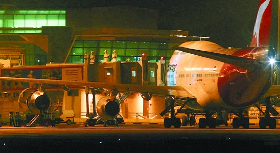 11月5日,在新加坡的樟宜机场,工程师检查迫降的澳洲航空公司波音747-400客机。 新华社发
