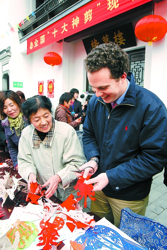 桐庐剪纸吸引外国友人 胡军 摄