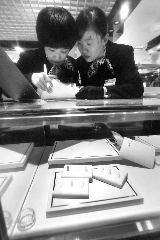 柜台店员在核对失窃珠宝。