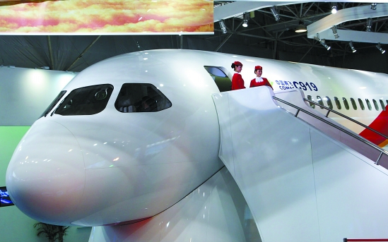 珠海航展上的国产C919大型客机的展示样机。 新华社记者 张毅 摄