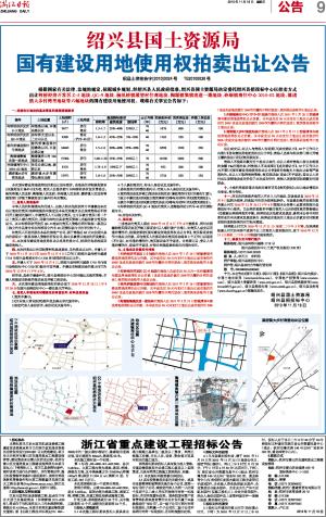 绍兴县国土资源局国有建设用地使用权拍卖出让公告
