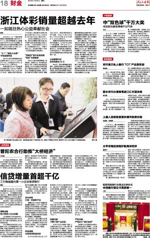 浙江体彩销量超越去年 一如既往热心公益奉献社会