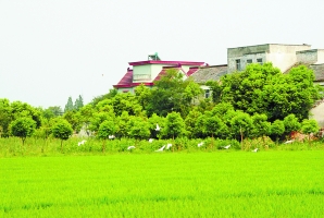 | 图为嘉兴市余新镇将农民零星分散的住宅逐步集中统一安置,户均节省占地0.5亩。如今,村居绿树掩映,田野白鹭齐飞,呈现美丽乡村风貌。严慧 摄影 |