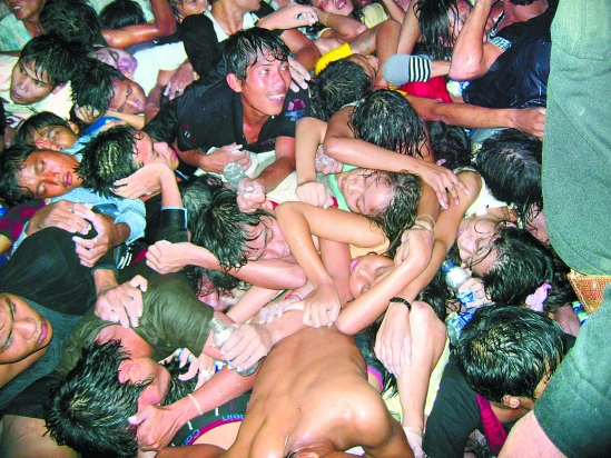 这是2010年11月23日拍摄的柬埔寨金边踩踏事件现场的人群。 新华社发