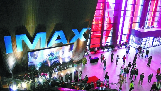 北京,中国电影博物馆中国最大的IMAX银幕剧院。剧院前悬挂着这《爱丽丝梦游仙境》和《阿凡达》广告。