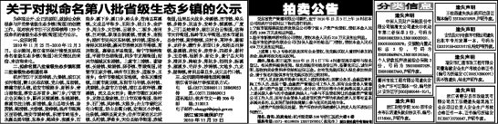 为体现公开、公正的原则,鼓励公众积极参与并监督省级生态乡镇(街道)的创建工作,现对杭州市江干区彭埠镇等139个拟命名的省级生态乡镇(街道)进行公示。