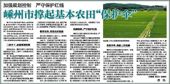嵊州市以建立耕保责任制为保证,严守基本农田保护红线。