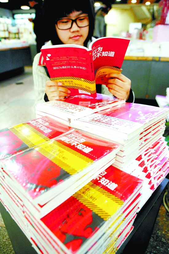 11月25日,杭州庆春购书中心,红旗出版社出版的两本新书《呼救人心》和《别以为我们不知道》登场,点亮了2010冬季人文阅读“双响炮”。图为一90后读者在翻阅新书。魏志阳 摄